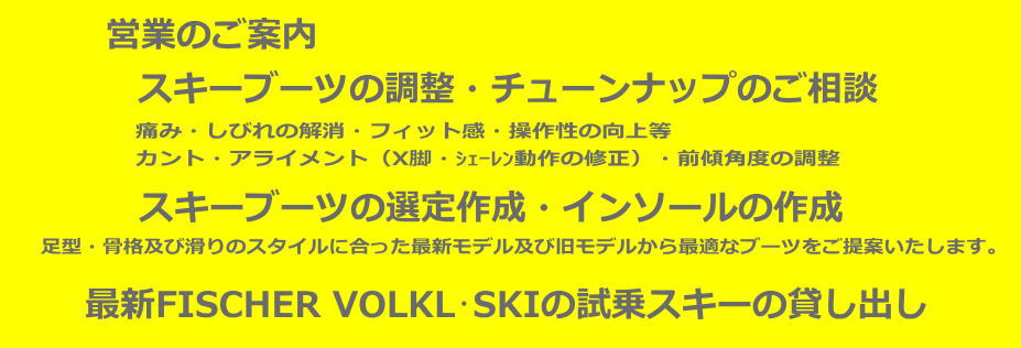 | 痛み、当たり、フィット感、カント調整、アライメント調整 お任せ下さい。ブーツのお悩み解決します。詳しくはこちら | ||||||||||||||||||||||||||||||||||||||||||||||||||||||||||||||||||